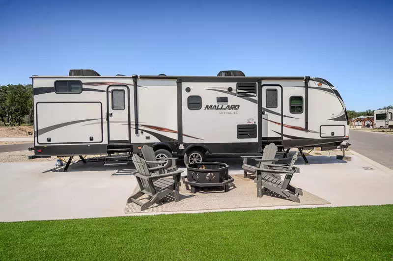 Escape to comfort with this 35-foot RV rental, ideal for a peaceful getaway. Offering ample space, it comfortably sleeps 4 and comes fully stocked with essentials to make your stay convenient and relaxing. Enjoy a cozy retreat without the hassle, as pets are not permitted. Perfect for family trips or a quiet escape, Lot 79 offers the serene Riverwalk experience in a well-equipped, welcoming environment.